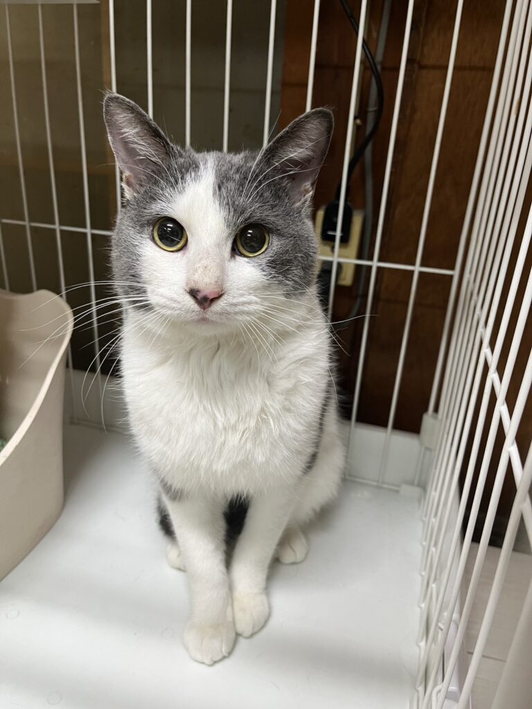 【特徴】クレオと兄弟。ちょっと歪んだハチワレと鼻黒あり。綺麗なグレー白。