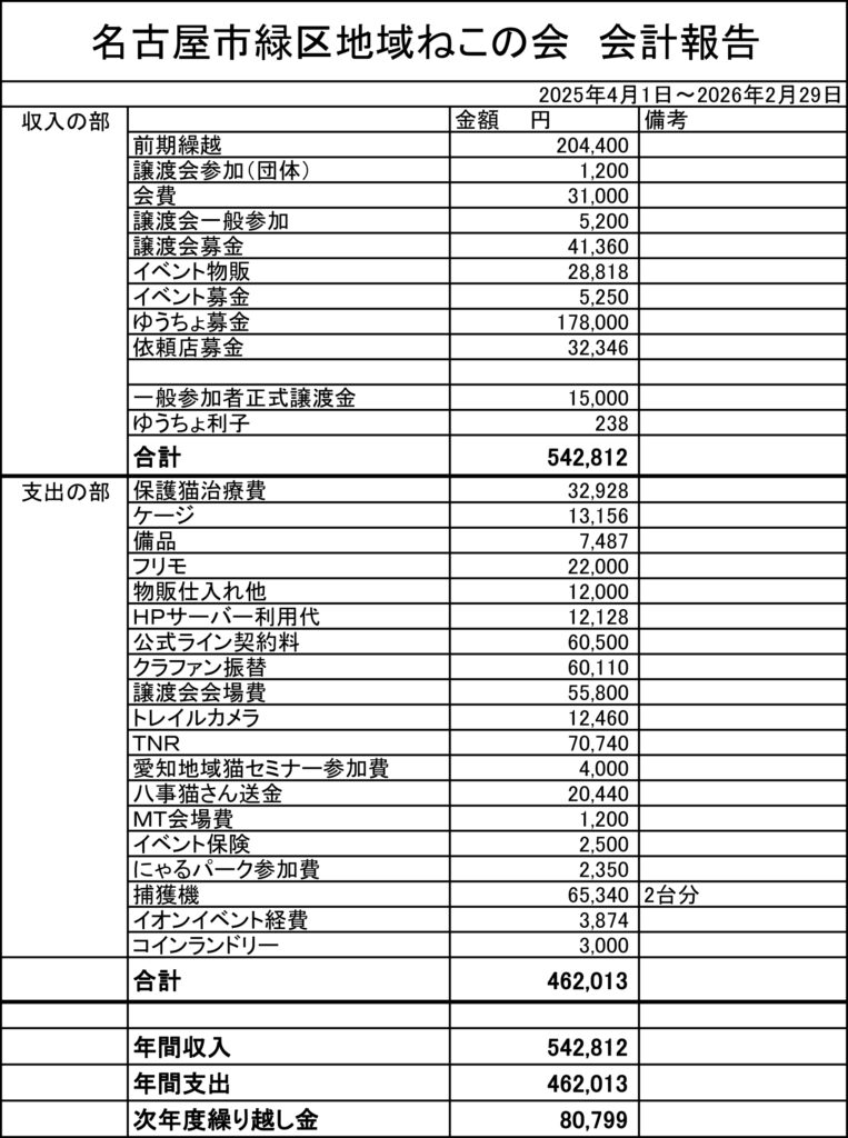2025年4月~2026年2月の会計報告です。